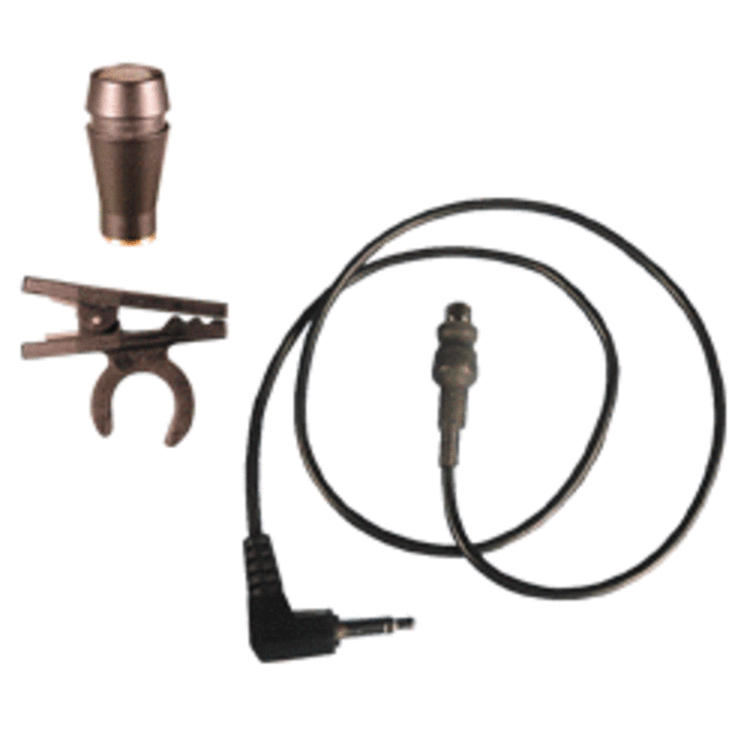 CRM-220 microphone pack with black stub microphone head, lapel clip & lead.