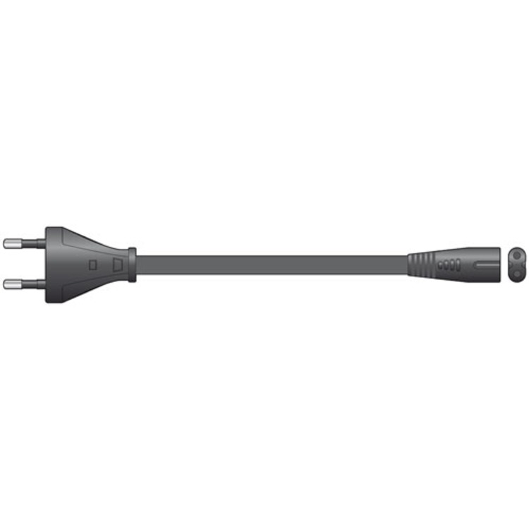 Standard figure 8 connector to Euro 2 pin plug. Ideal for use on portable equipment.