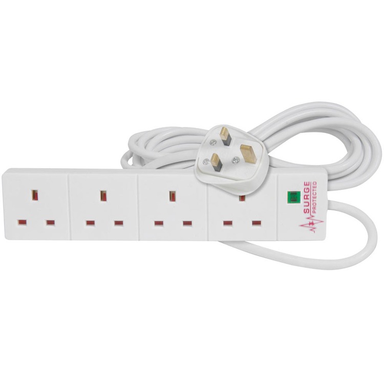 4 gang mains extension leads with surge and spike protection and neon indicator.