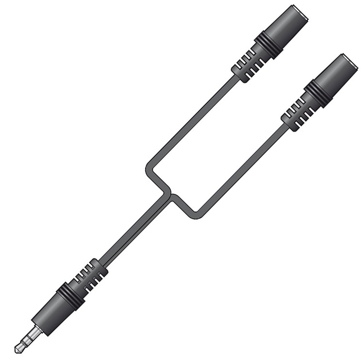 Standard 3.5mm mini jack stereo plug to 2 x 3.55mm mini jack stereo socket lead, to allow conversion of 1 x 3.5mm stereo plug to 2 x 3.5mm stereo socket