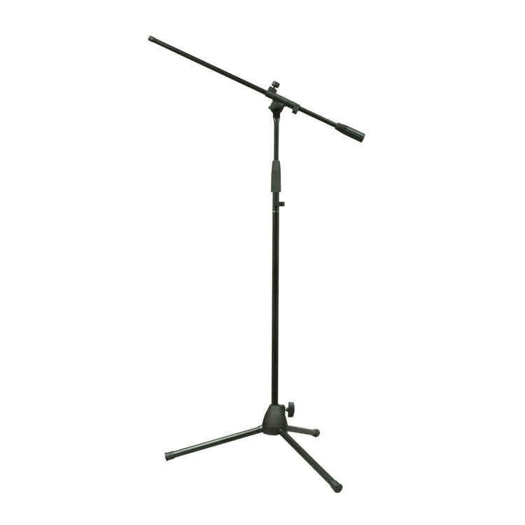 A metal professional standard floor microphone stand with boom arm that is adjustable for height, angle and extension.