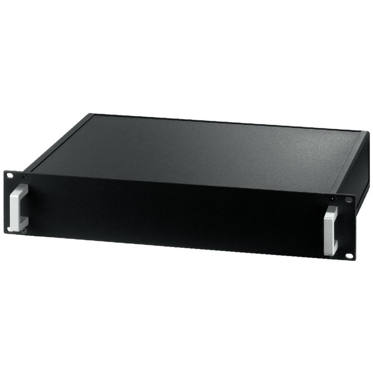 Fully assembled. Extra robust, black plastic-coated 1.2mm sheet steel housing (rear panel: 1.5mm) with 3mm standard aluminium front panel. Closed top plate.